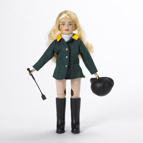 Fully posable woman rider from the Barn Buddies™ collection. Comes dressed in removable formal riding attire with her own crop and riding hat. A perfect fit on Paradise horses and ponies.