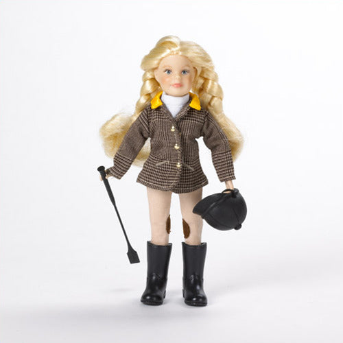 Fully posable woman rider from the Barn Buddies™ collection. Comes dressed in removable formal riding attire with her own crop and riding hat. A perfect fit on Paradise horses and ponies.