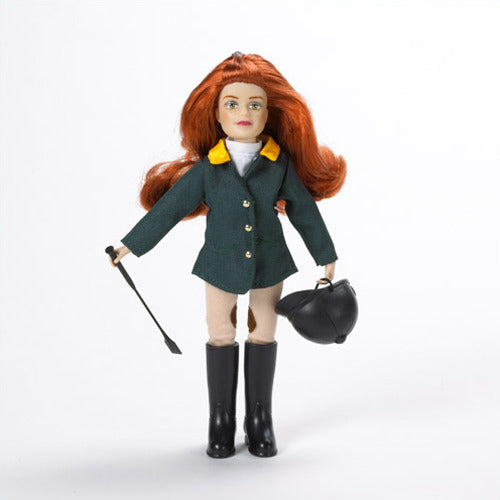 Fully posable woman rider from the Barn Buddies™ collection. Comes dressed in removable formal riding attire with her own crop and riding hat. A perfect fit on Paradise horses and ponies.