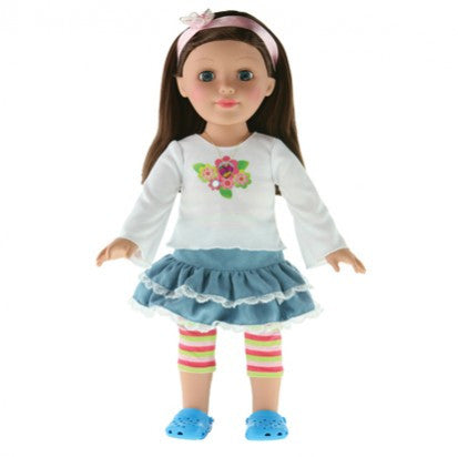 The Be My Girl™ dolls sport fashionable outfits and come with their own unique charm that has an inspirational message. Their heads, arms and legs are made of vinyl and their bodies are soft and huggable. They have rooted hair, open and close eyes, a fully